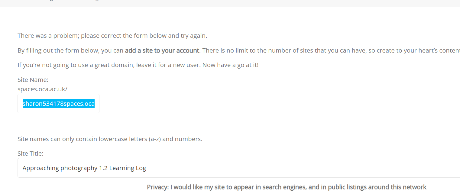 I can't log onto OCA Spaces, a 403 error code keeps appearing, which means I cannot create my learning log.